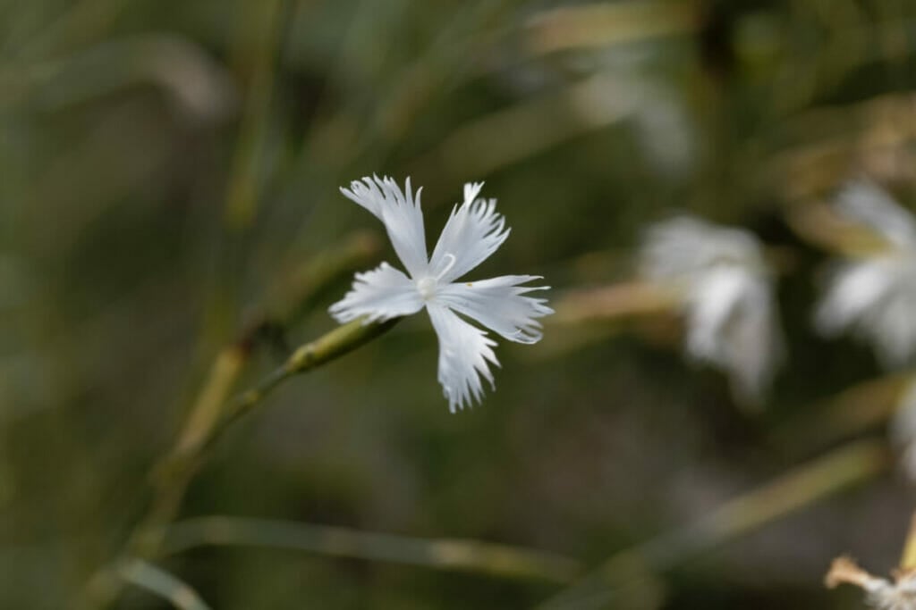 Dianthus acicularis is a species of carnation flower native to the Ural Mountains that straddle Russia and Kazakhstan. These beautiful types of carnation flowers grow in small clumps on grasslands and slopes. It has white star-shaped flowers with five fringed petals.